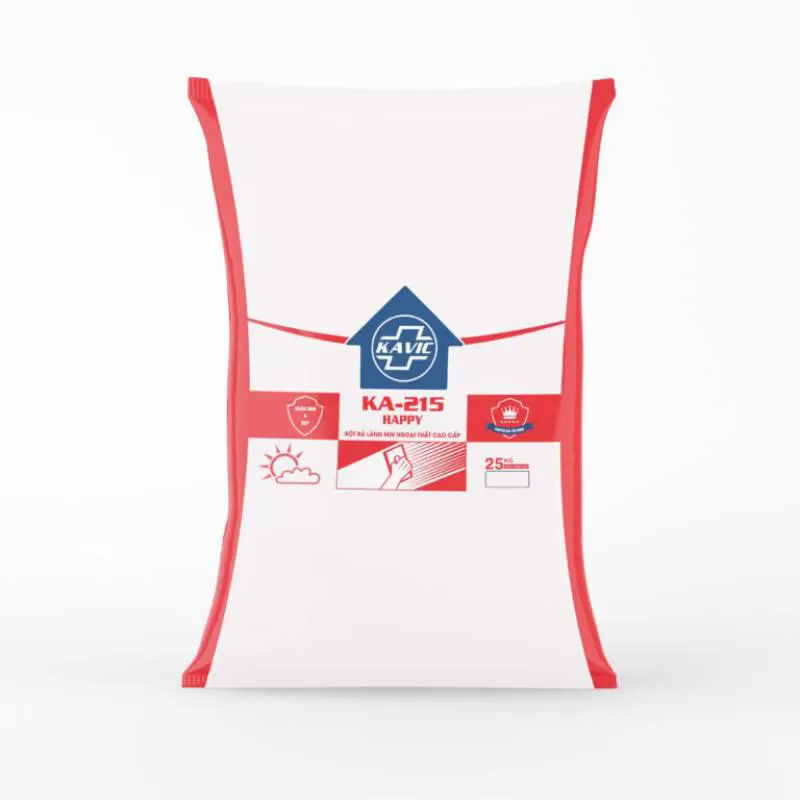 BỘT BẢ LÁNG MỊN NGOẠI THẤT CAO CẤP KA-215 là loại bột mịn, có màu trắng được cấu thành từ thành phần chính là keo kết dính, bột khoáng, phụ gia. KA-215 khi sử dụng kết hợp với nước sạch sẽ tạo độ mềm dẻo của bột giúp làm phẳng, nhẵn mịn, che phủ các vết nứt làm tăng vẻ đẹp thẩm mỹ cho bề mặt tường, thích hợp cho việc trang trí tường của những công trình kiến trúc cao cấp. Ngoài ra, sản phẩm còn hướng đến tiêu chí bảo vệ môi trường, an toàn cho sức khỏe người dùngShipping/Vận chuyển