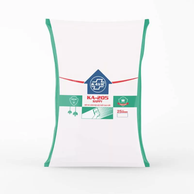 BỘT BẢ LÁNG MỊN NỘI THẤT CAO CẤP KA-205 là loại bột mịn, có màu trắng được cấu thành từ thành phần chính là keo kết dính, bột khoáng, phụ gia. KA-205 khi sử dụng kết hợp với nước sạch sẽ tạo độ mềm dẻo của bột giúp làm phẳng, nhẵn mịn, che phủ các vết nứt làm tăng vẻ đẹp thẩm mỹ cho bề mặt tường, thích hợp cho việc trang trí tường của những công trình kiến trúc cao cấp. Ngoài ra, sản phẩm còn hướng đến tiêu chí bảo vệ môi trường, an toàn cho sức khỏe người dùngShipping/Vận chuyển
