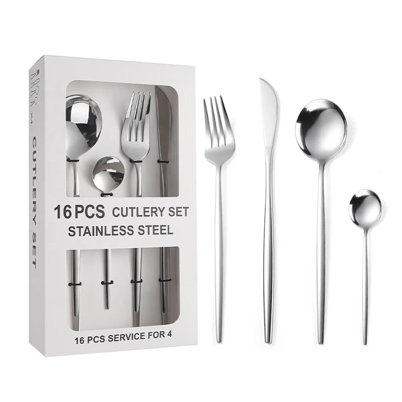 Business Super 16 PCS Flatware Set Silver Spoons Forks Knifes Utensils Sets Portable Portugal Stainless Steel Cutlery Set For 4