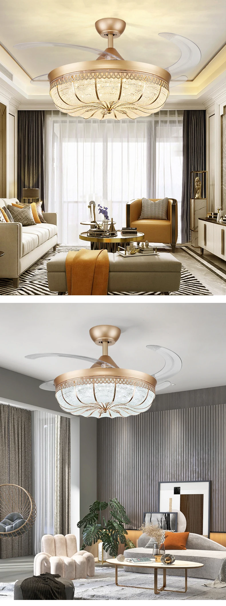 Ceiling Fan Chandelier 36-inch Bladeless Retractable Blade with Remote Fan Dimmer to Change Color Manufacturers Wholesale