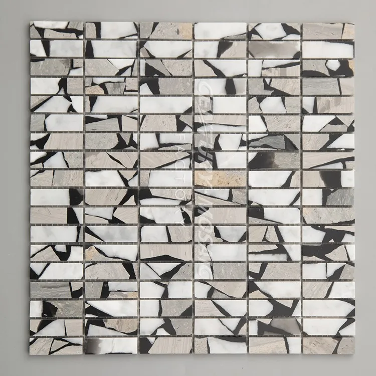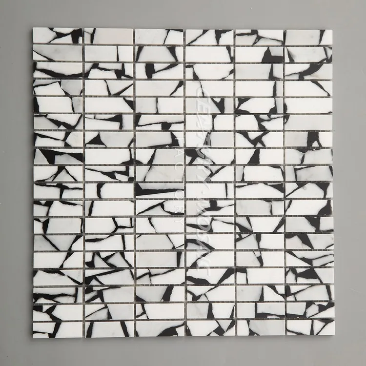 Centurymosaic Set Sail Waterjet Marble Bathroom Wall White And Black Mosaic Tiles