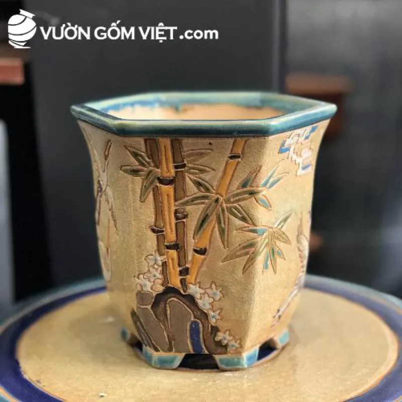 Chậu lục giác khắc 15 cm