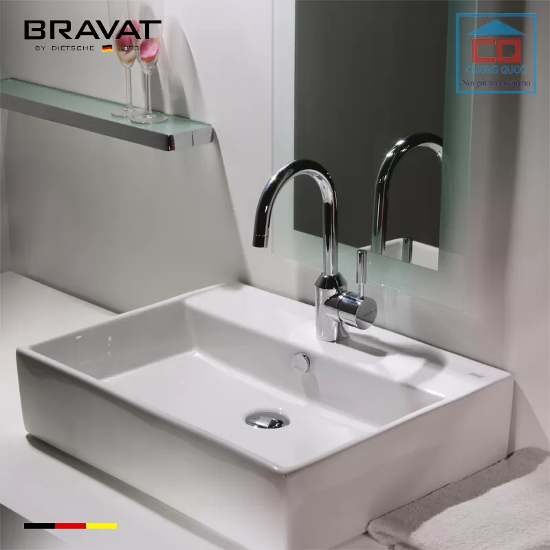 Chậu rửa mặt đặt bàn lavabo Bravat C22137W-1-ENG nhập khẩu từ Đức, thiết kế đẹp mắt tinh tế dễ lắp đặt phù hợp vời mọi không gian nhà vệ sinh của nhà bạn