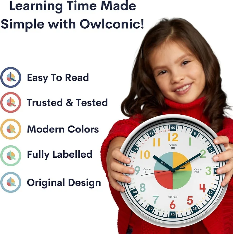 Children'S Teaching Early Educational Wall Clocks for Study Silent Kids Learning Clock for Living Room