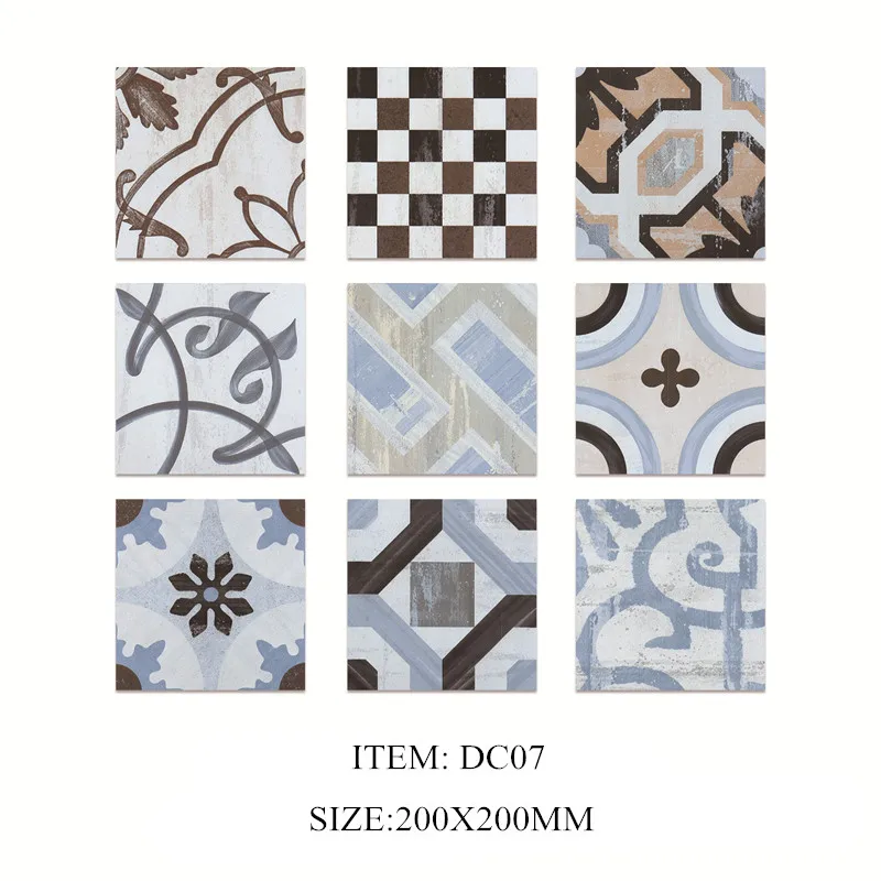 China 200x200 House Decoration Rough Matte Ceramic Kitchen Bathroom Tile Flower Design for Floor and Wall Tiles Interior
