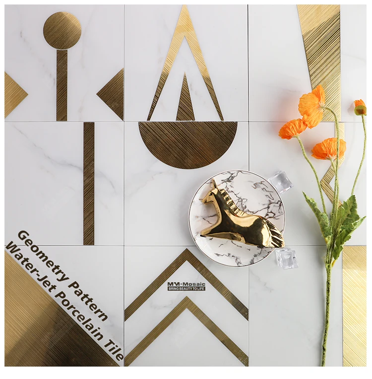 China 200x200mm Luxury Marble Look Geometric Pattern White Gold Porcelain Floor And Wall Tiles For Backsplash Bathroom Kitchen