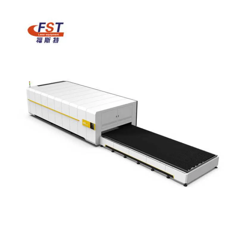 is a fully enclosed metal sheet fiber laser cutting machine with exchange platform, Equipped with fiber laser source of power from 1.5kw to 30kw, it is able to cut up to 25mm metal sheet And the working area is from 3000mm*1500mm to 6000mmx2500mm.