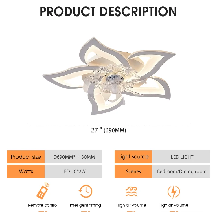 Nordic Style Home Decorative Modern Dc Bldc Led Light Retractable Invisible Ceiling Fan With Light Remote Control