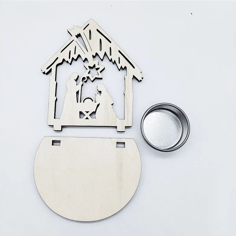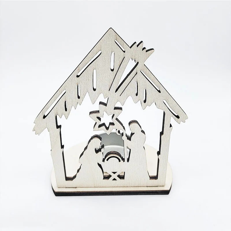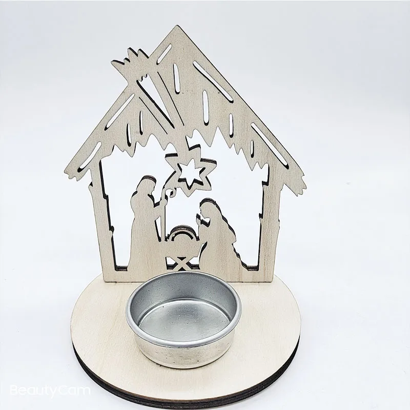 Creative Wooden Candlestick Jesus Advent Decoration Religious Candle Jars