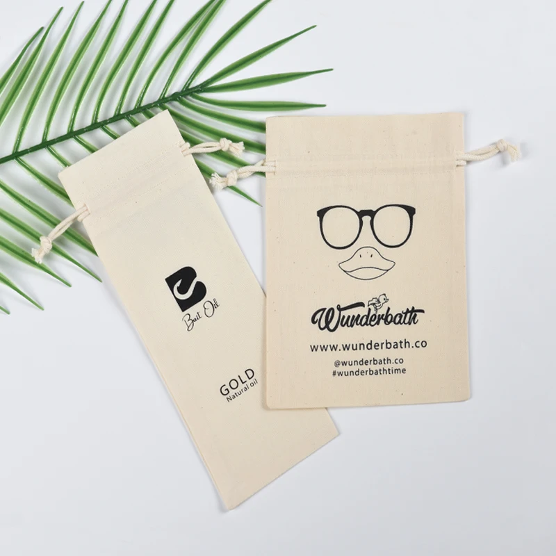 Custom Eco-Friendly Organic Cotton Gift Drawstring Small Dust Bag Pouch with Logo for Lipstick