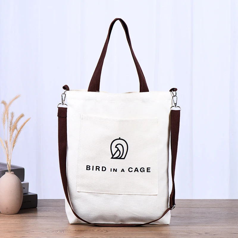 custom logo Student cartoon gift dual-use canvas bag wholesale shopping diagonal cross cotton bag