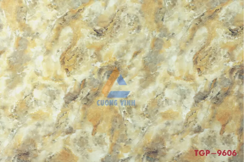 Đá hoa cương PVC TGP-9606 Kích thước: 1220 x 2440 (mm) Độ dày: 3.2mm, 3.8mm, 5mm. Bề mặt phủ 4 lớp UV chống trầyShipping/Vận chuyển
