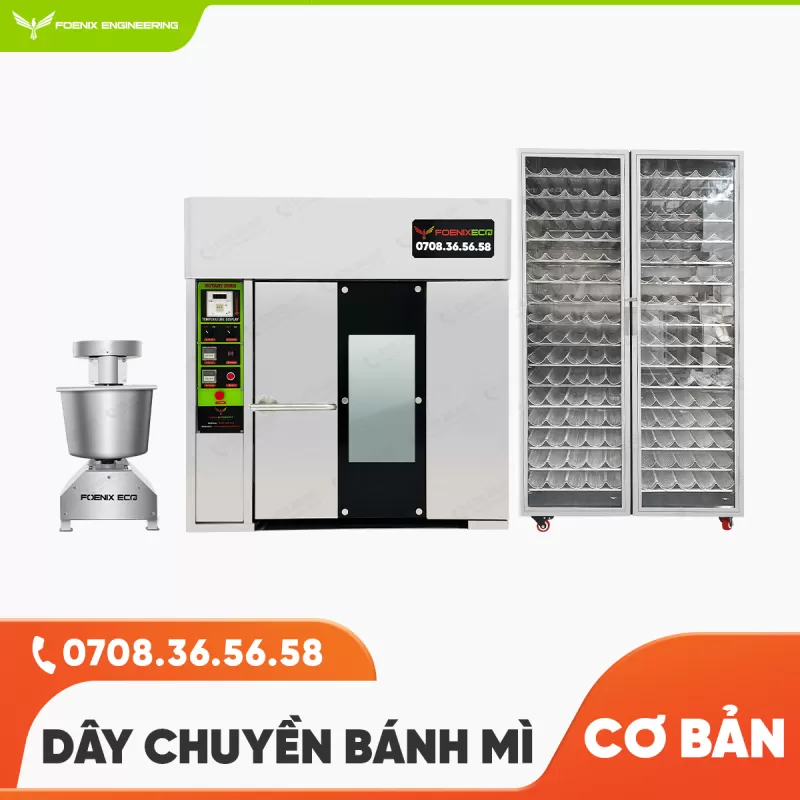 Dây chuyền làm bánh mì cơ bản là lựa chọn phù hợp cho những người mới bắt đầu, đặc biệt là khi nguồn vốn còn hạn chế. Máy trộn bột Tủ ủ bột Lò nướng bánh mìShipping/Vận chuyển