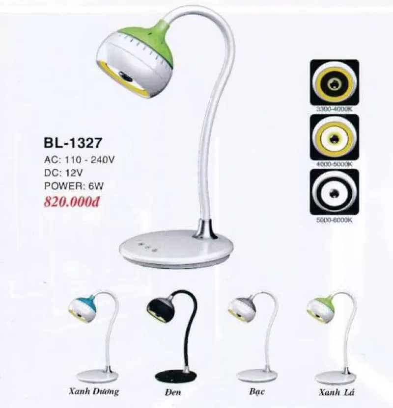 Thông số kỹ thuật của đèn bàn BL-1327: Thương Hiệu: Euroto Bảo Hành : 1 - 3 năm Trạng Thái : Còn Hàng AC: 110 - 240V DC: 12V POWER: 6W Công tắc cảm ứng - Ánh sáng 3 chế độ