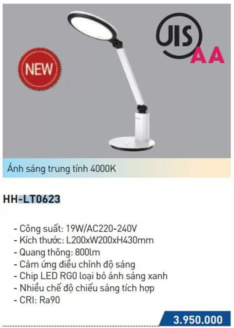 Đèn bàn led 19W HH-LT0623 panasonic Công suất: 19W / AC220 - 240V- Kích thước: L200 x W200 x H430mm- Quang thông: 800lm, - Cảm ứng điều chỉnh độ sáng