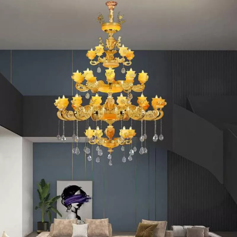 Đèn chùm nến thả thông tầng sảnh 35 tay D1500mm HP-CN1766/5+15+10+5 giá rẻ 30%, chất lượng cao cấp, đẹp sang trọng, giao hàng trên toàn quốc