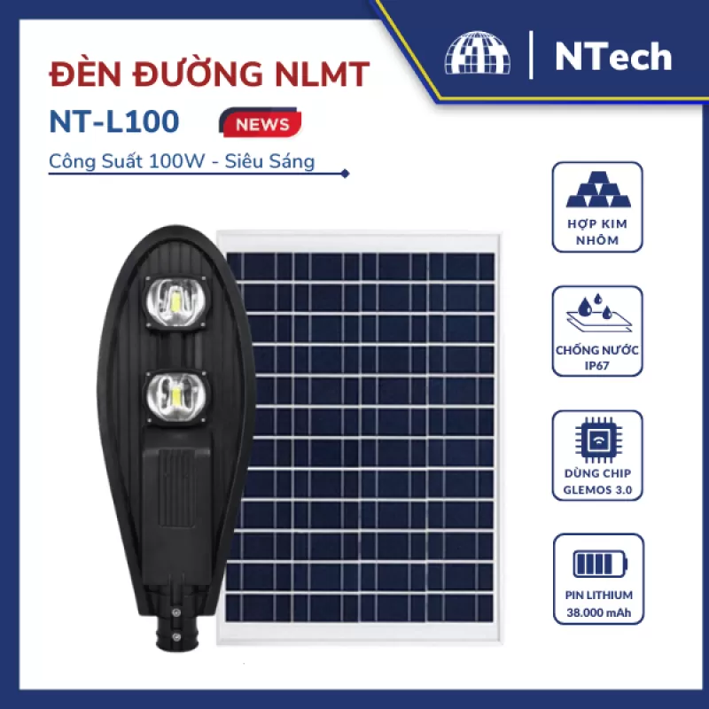 Đèn đường chiếc lá 100w NT-L100 đang có mức giá cực tốt tại NTech. Dung lượng pin lớn, thời gian chiếu sáng cao. Gọi ngay hotline 0987 176 467