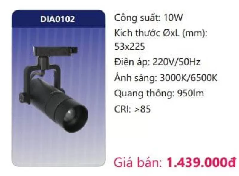 Công suất: 10W Kích thước ØxL (mm): 53 x 225 Điện áp: 220V/50Hz Ánh sáng: 3000K/6500K Quang thông: 950lm CRI: >85