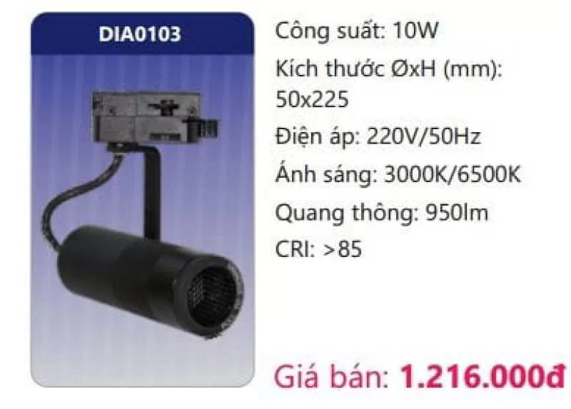 Công suất: 10W Kích thước ØxH (mm): 50 x 225 Điện áp: 220V/50Hz Ánh sáng: 3000K/6500K Quang thông: 950lm CRI: >85