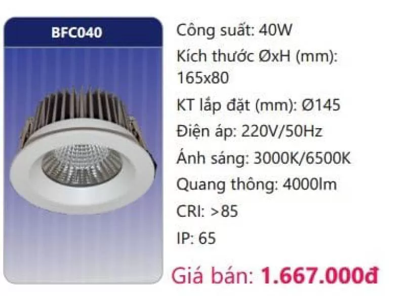 Đèn LED downlight âm trần cao chiếu sâu BFC040