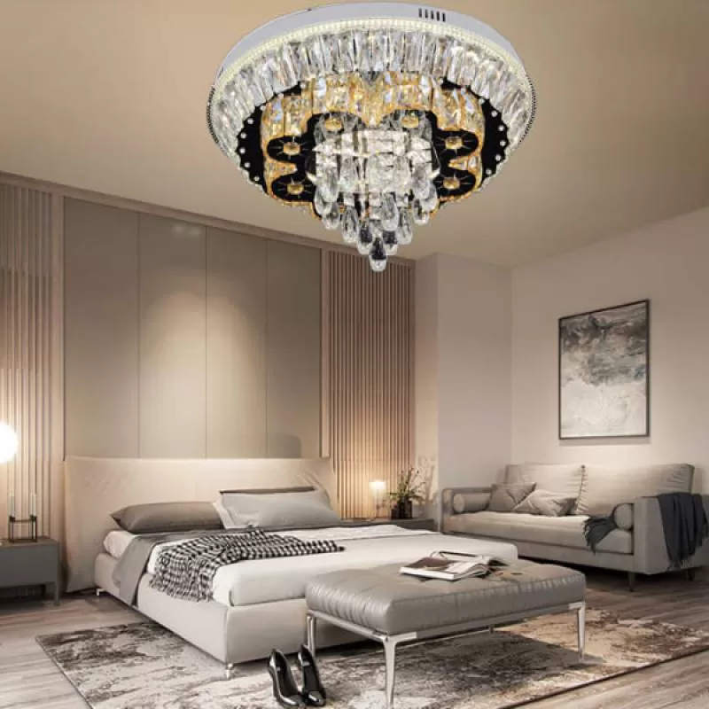 Đèn mâm ốp trần led phòng ngủ 3 chế độ gắn hạt pha lê D500mm DR-NC4939