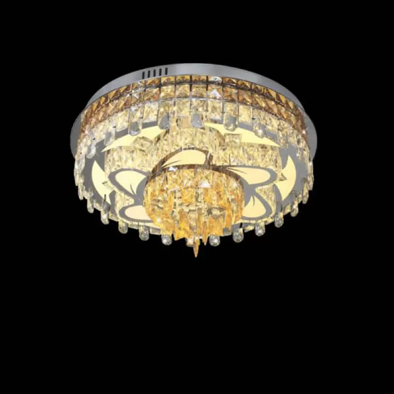 Đèn mâm ốp trần led gắn hạt pha lê có họa tiết độc lạ D500mm DR-NC366