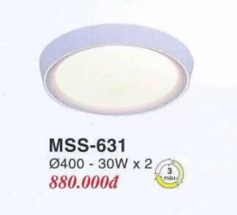 Thông số kỹ thuật của đèn mâm áp trần MSS-631: Thương Hiệu: Euroto Bảo Hành : 1 - 3 năm Trạng Thái : Còn Hàng Kích thước: Ø400 - 30W x 2 3 chế độ - Bảo hành 3 năm