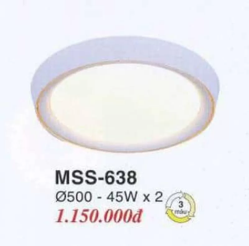 Thông số kỹ thuật của đèn mâm áp trần MSS-638: Thương Hiệu: Euroto Bảo Hành : 1 - 3 năm Trạng Thái : Còn Hàng Kích thước: Ø500 - 45W x 2 3 chế độ - Bảo hành 3 năm