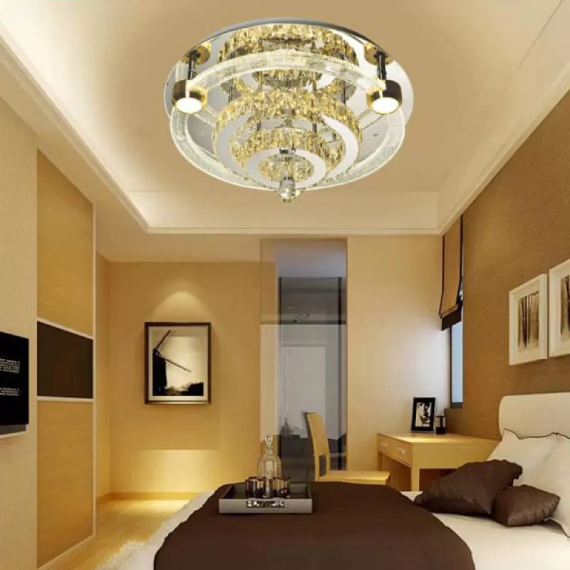 Đèn mâm ốp trần led phòng ngủ 3 chế độ gắn hạt pha lê D500mm DR-NC4938