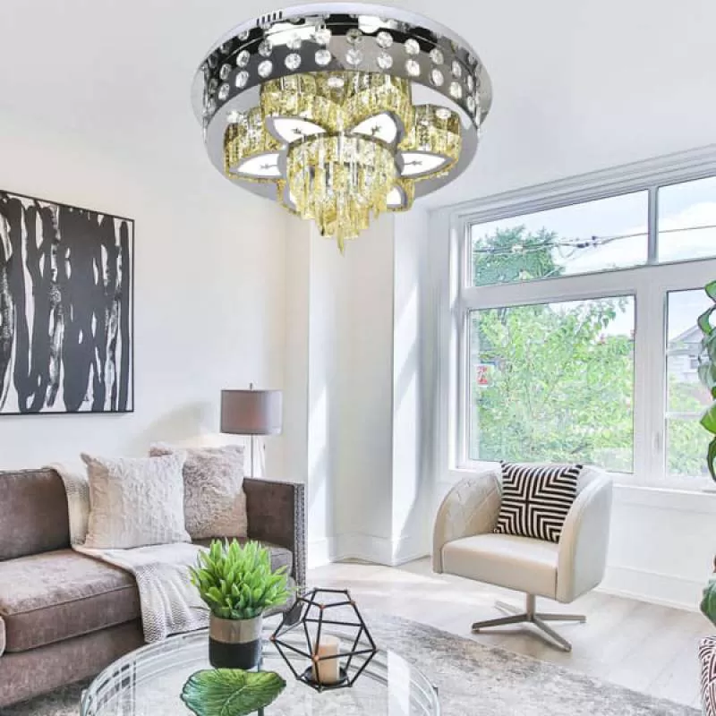 Đèn mâm ốp trần led phòng ngủ 3 chế độ gắn hạt pha lê D500mm DR-NC4939