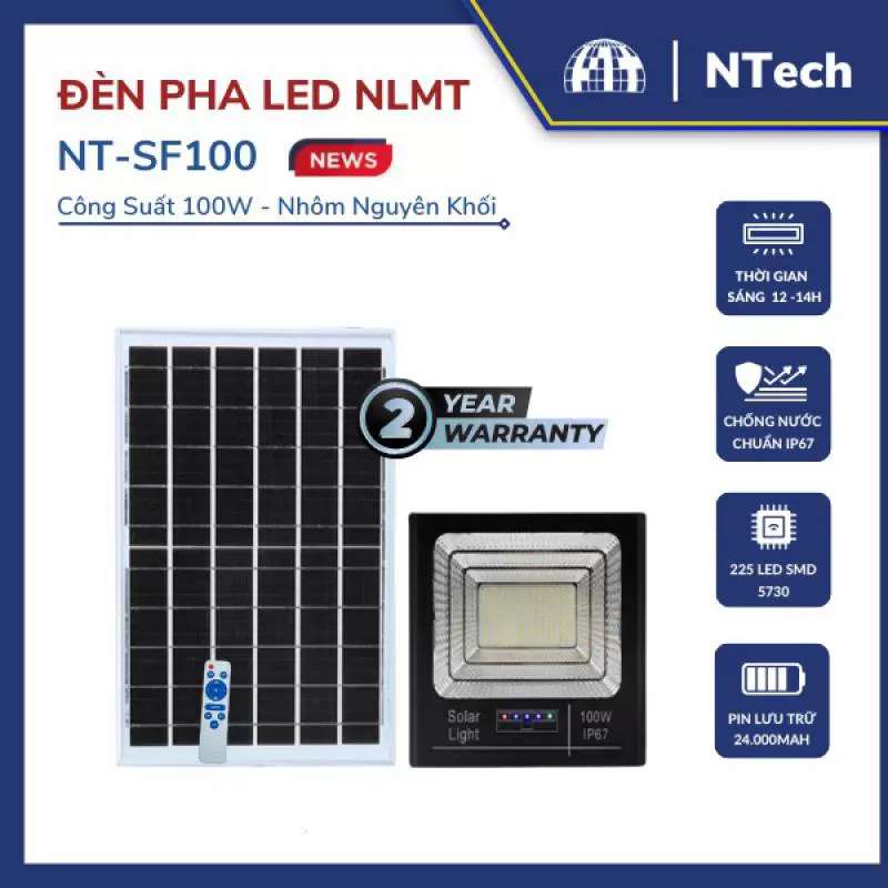Đèn năng lượng mặt trời solar light 100w NT-SF100 có chất lượng phải nói là cực kỳ tốt. Giá tốt nhất tại NTech, liên hệ hotline 0987 176 467