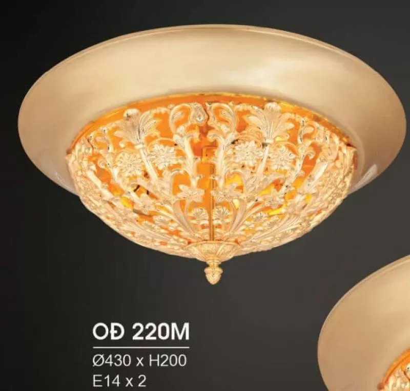 Đèn ốp đồng OĐ 220M HUFA Thương Hiệu: Hufa, Kích thước: Ø430 x H200, Sử dụng đèn đuôi E14 x 2 bóng, Bảo hành 12 tháng.