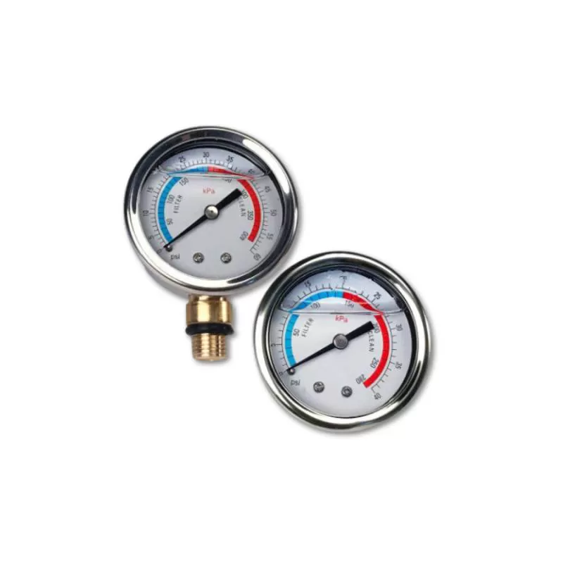 Đồng hồ áp suất Emaux là thiết bị giúp đo áp suất bồn lọc cát, dùng kết hợp hiệu quả với các loại bình lọc cát trong quá trình lọc nước hồ bơi. Chất liệu: Thép không gỉ Chỉ số làm việc tối đa: 40psi/275 kPa Kết hợp vận hành: Bình lọc Emaux V350 – V1400Shipping/Vận chuyển