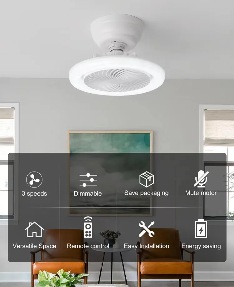 Modern New Ultrathin Bladeless Ceiling Fan Light 20 Inch Smart LED Ceiling Fan Lamp With Remote Control
