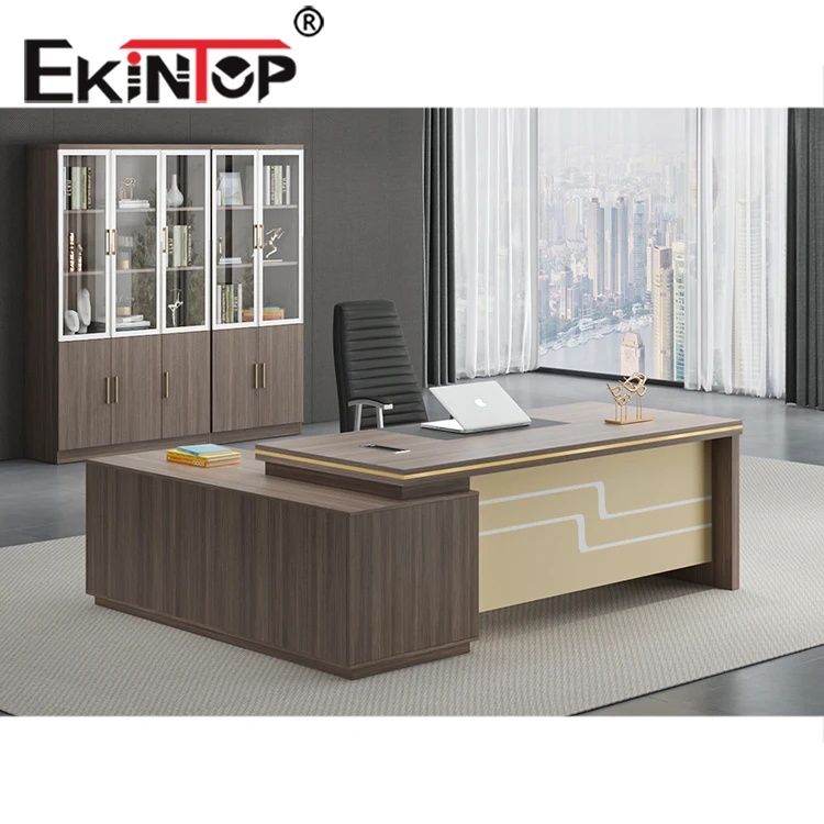 Ekintop Cheap Price Modern Simple Style MDF Material L Shape boss Ceo Office Desk Executive Desk With Cabinet
