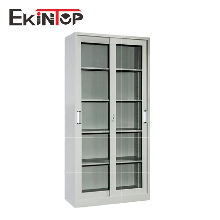 Ekintop mirror shallow metal steel sliding front locking glass storage filing cabinet with glass doors