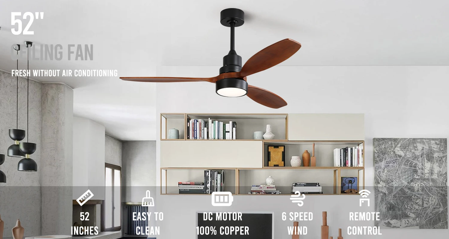 Energy Saving Indoor 52 Inch Decorative Solid Wood Modern Smart Led Ceiling Fan With Light