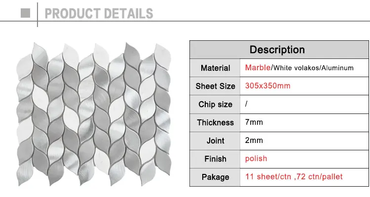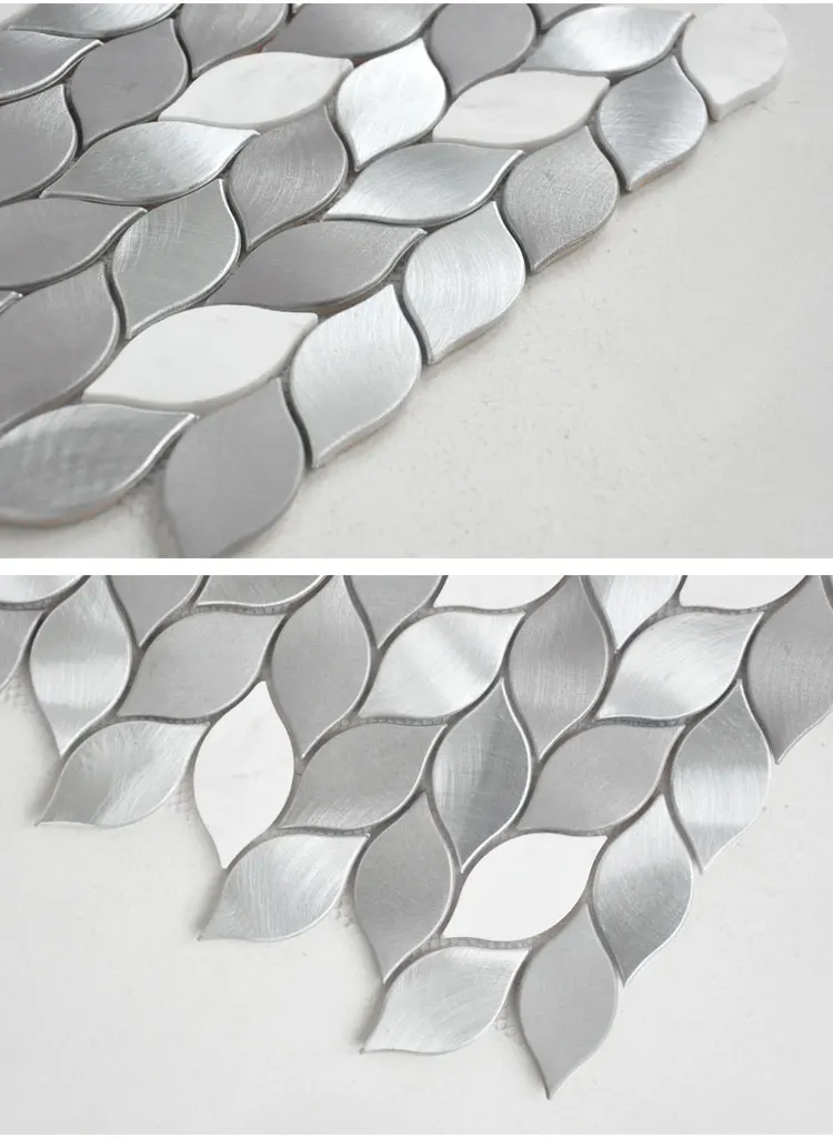 Gạch khảm kim loại thép không gỉ hình lá bạc kết hợp đá cẩm thạch hoàn thiện satin dùng để trang trí tường