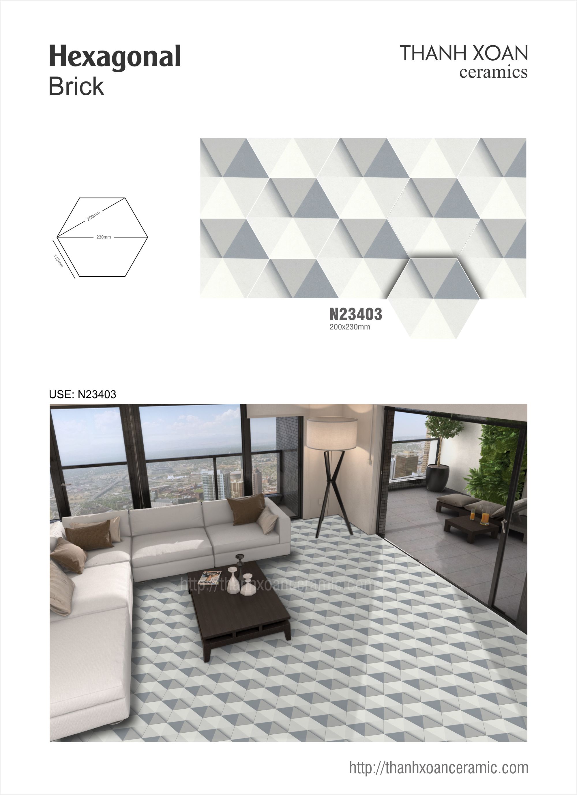 GẠCH LỤC GIÁC 20x23: N23403