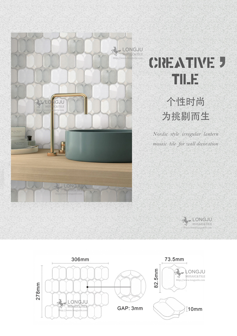 Bảo quản Gạch mosaic gốm bóng màu trắng xám phong cách Bắc Âu HQDF-02MIX