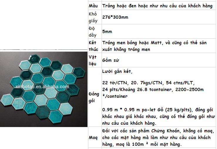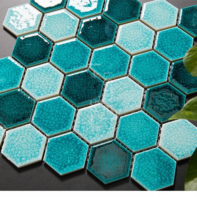 Gạch mosaic trang trí hình lục giác 276x303mm màu xanh XTB-005