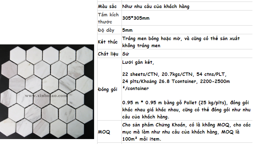 Gạch mosaic trang trí hình lục giác 305x305mm màu sắc độc đáo XBTZH1957