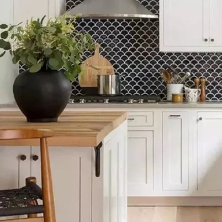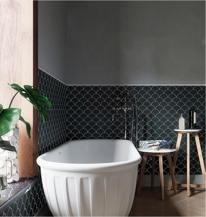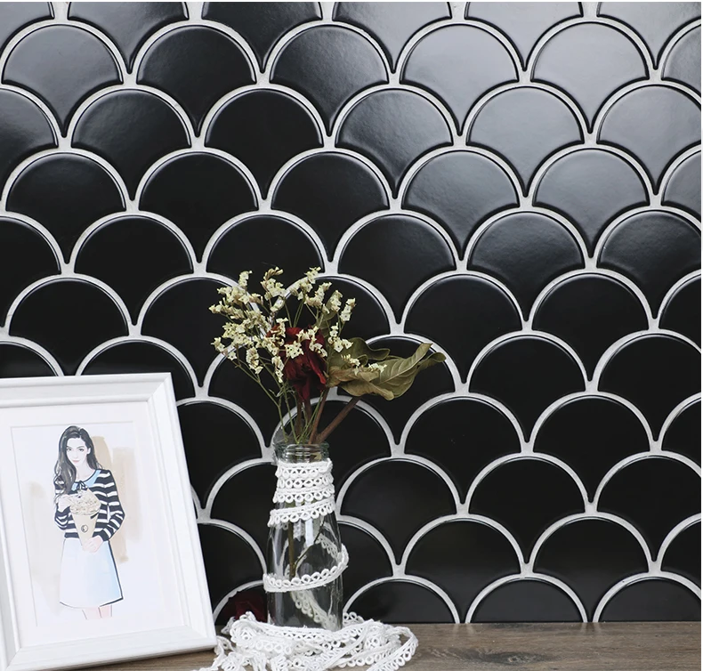 Gạch mosaic vảy cá 295 × 335mm màu đen mã S8520