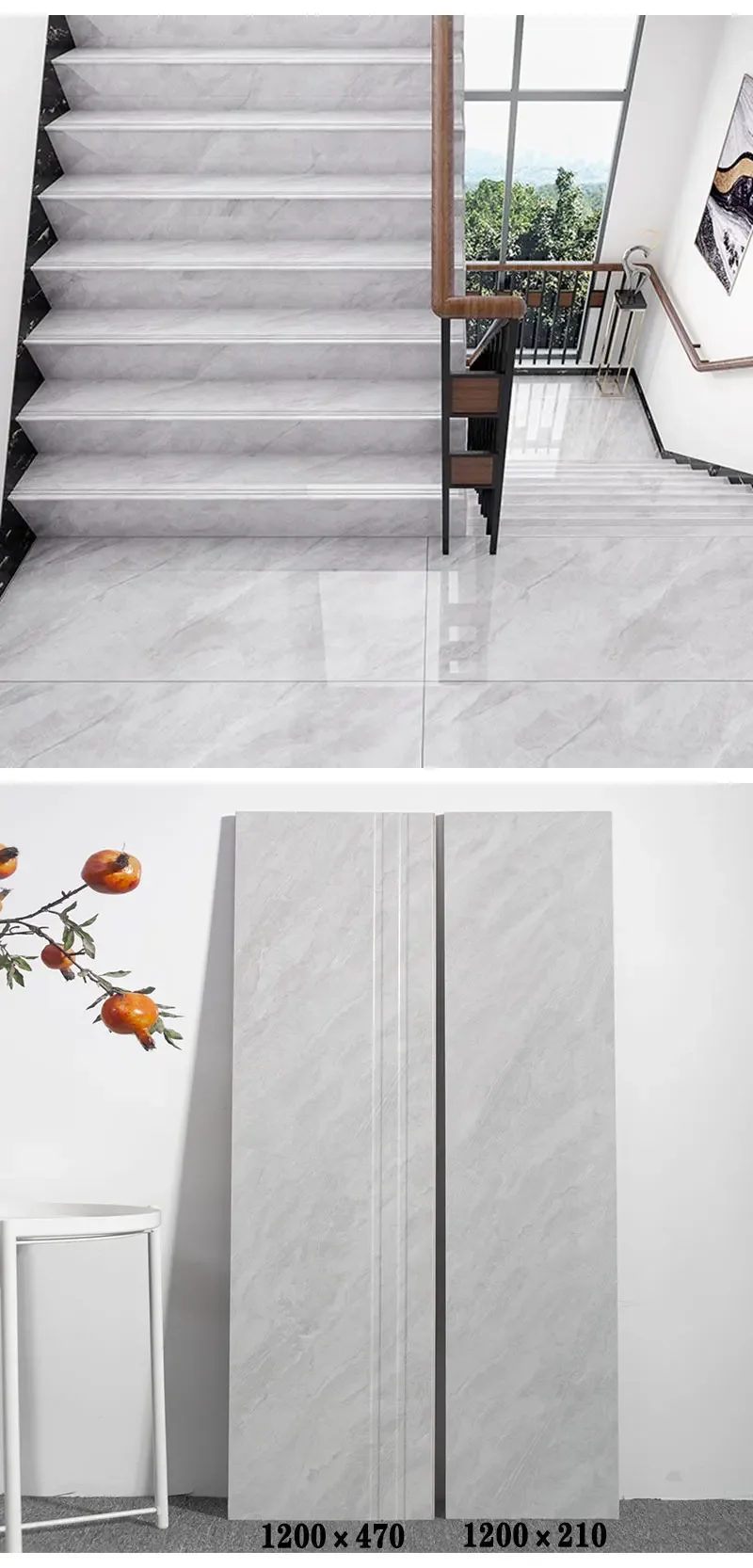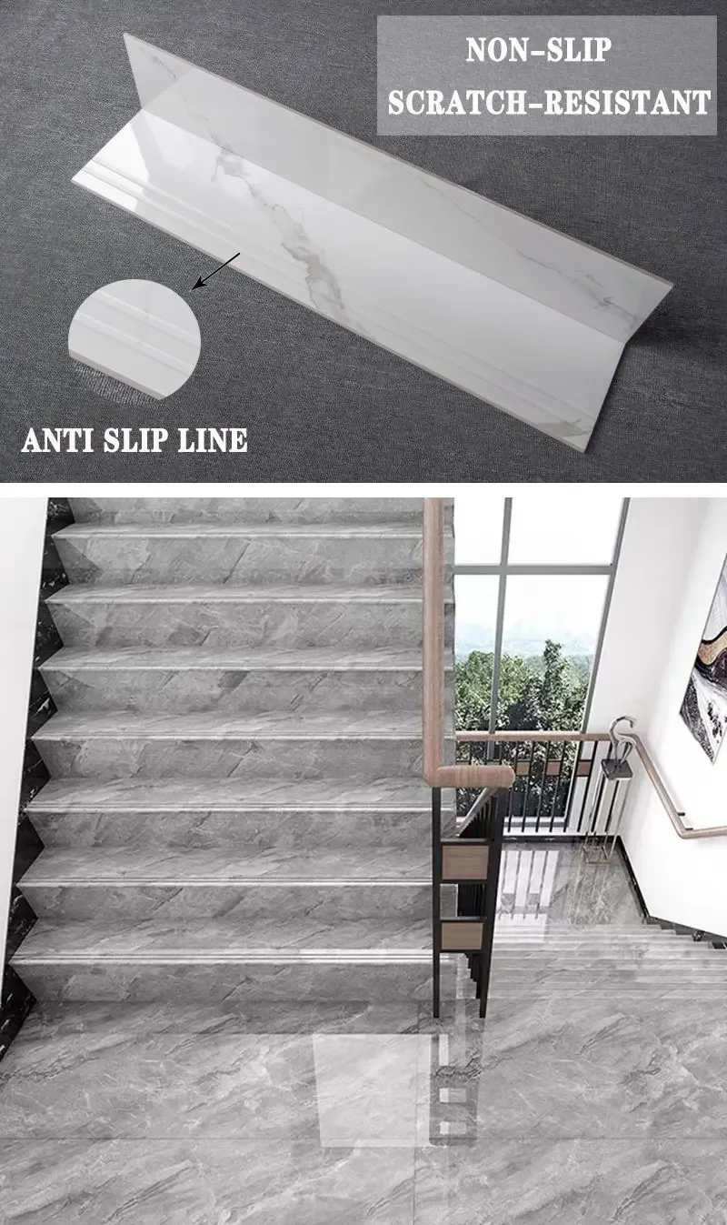 Gạch ốp cầu thang vân đá bóng kính porcelain