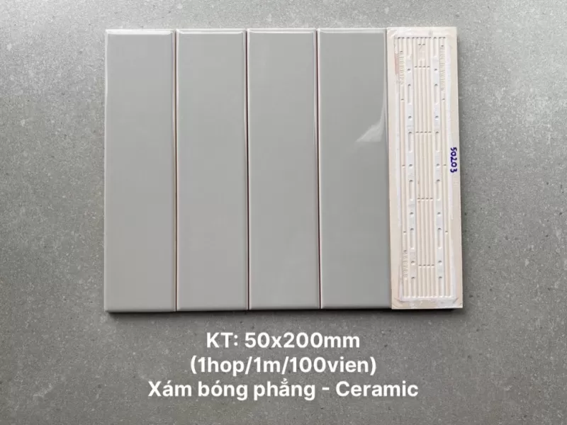 Gạch thẻ cao cấp xám bóng phẳng KT 50x200mm mã PSTA50203
