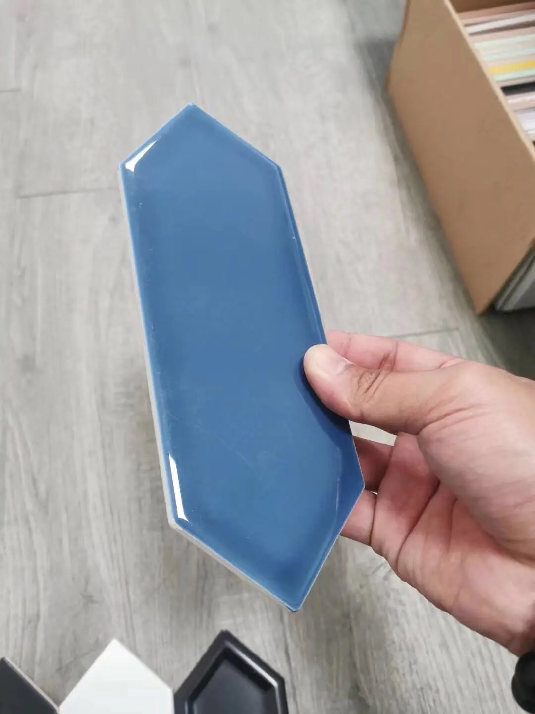 Gạch thẻ ốp tường mũi nhọn 76 * 228mm màu xanh lam M76228J