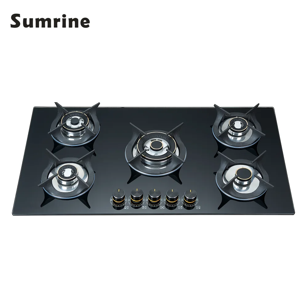 Gas Cootops 5 burner Household Appliance Black Glass Cooker Brass Hob Gas Stove