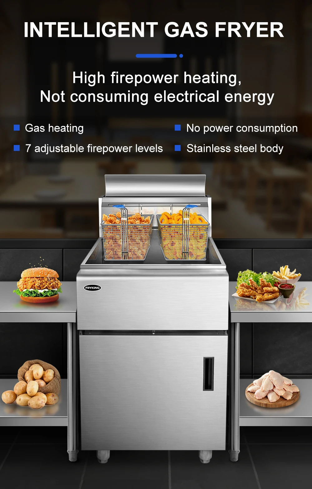 Commercial gas deep fryer with temperature control stainless steel deep fryer