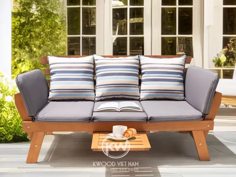 Sản phẩm ghế sofa gỗ ngoài trời có tay vịn - SF415 tại Kwood Việt Nam phù hợp với khôngsân vườn hoặc ban công.