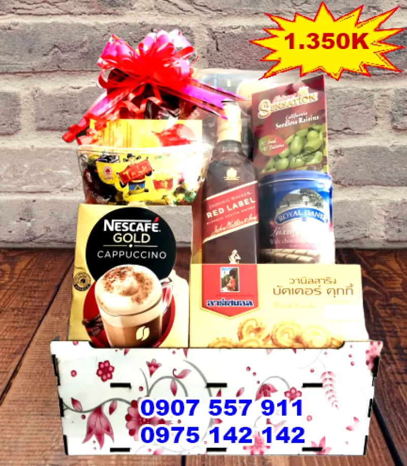 Giỏ quà tết giá 1 triệu 350k Đảm bảo hàng ngoại nhập date sử dụng còn mới, chất lượng cao nhất sẽ làm hài lòng Quý khách hàng. Với hơn 100 mẫu mã khác nhau, giá thành linh hoạt cho khách hàng nhiều sự lựa chọn.
